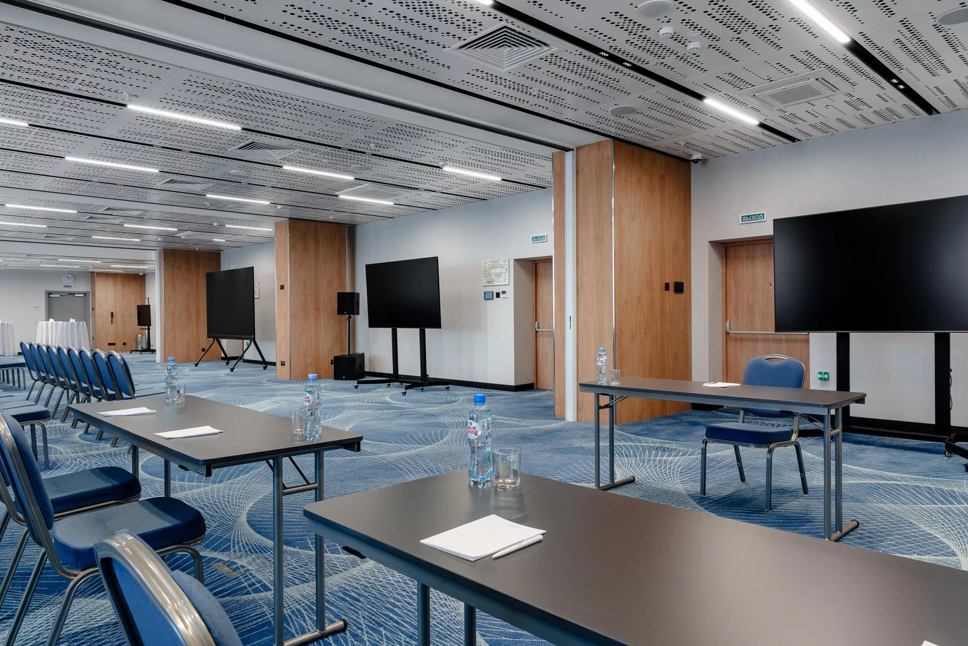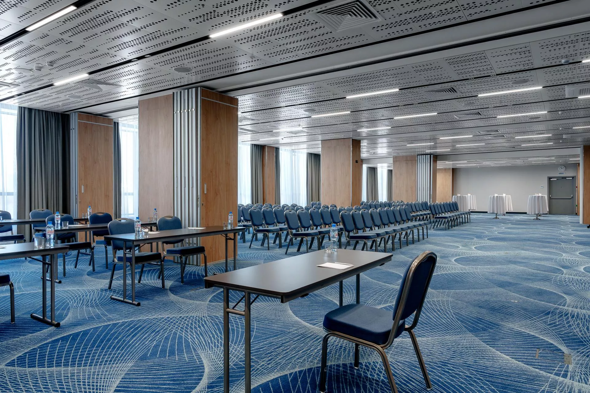 Многофункциональный современный конференц-зал способный трансформироваться на 3 отдельных пространства самостоятельных и независимых друг от друга различной вместимости. Конфигурация меняется в зависимости от типа мероприятия. Зал просторный, с естественным освещением и панорамным видом на реку, может выполнять роль, как большого зала для торжественного мероприятия, так и трансформироваться в несколько помещений для проведения семинаров, переговоров, занятий по группам. Подобный многофункциональный объект может исполнять роль места для торжественных встреч, международных конференций, региональных семинаров, переговоров с партнёрами по бизнесу, а также легко превращаться в лекторий.