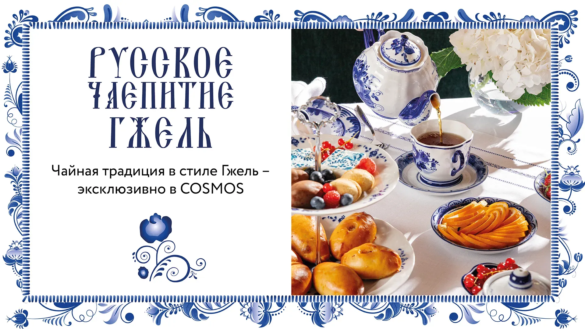 Сегодня Cosmos Hotel Group объединяет эти традиции в одном меню: царские пироги и советские десерты, сервировка в стиле гжельского фарфора и атмосфера настоящего русского чаепития.